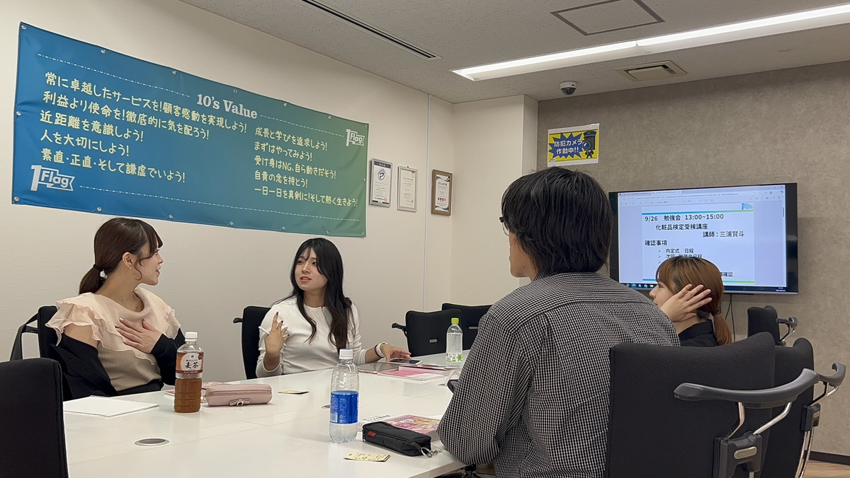 第1回の内定者勉強会では、OneFlagで取得を推奨している「日本化粧品検定」についての内容でした!